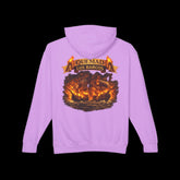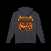 Lightweight cotton hooded sweatshirt printed with a bold back graphic of burning ships and the phrase “Quemado Los Barcos.” The soft, jersey-lined hood and relaxed silhouette make it feel lived-in from the first wear. Breathable 100% ring-spun US cotton keeps the fabric light and airy while still holding bright, clean print detail. Subtle design details — flatcord drawstrings, rolled-forward shoulders and a sewn-in twill label — give it a crafted, street-ready look. Wear it when you want the comfort of a broken-in favorite and the statement of a storyteller's tee: gritty, warm, and unmistakably bold.