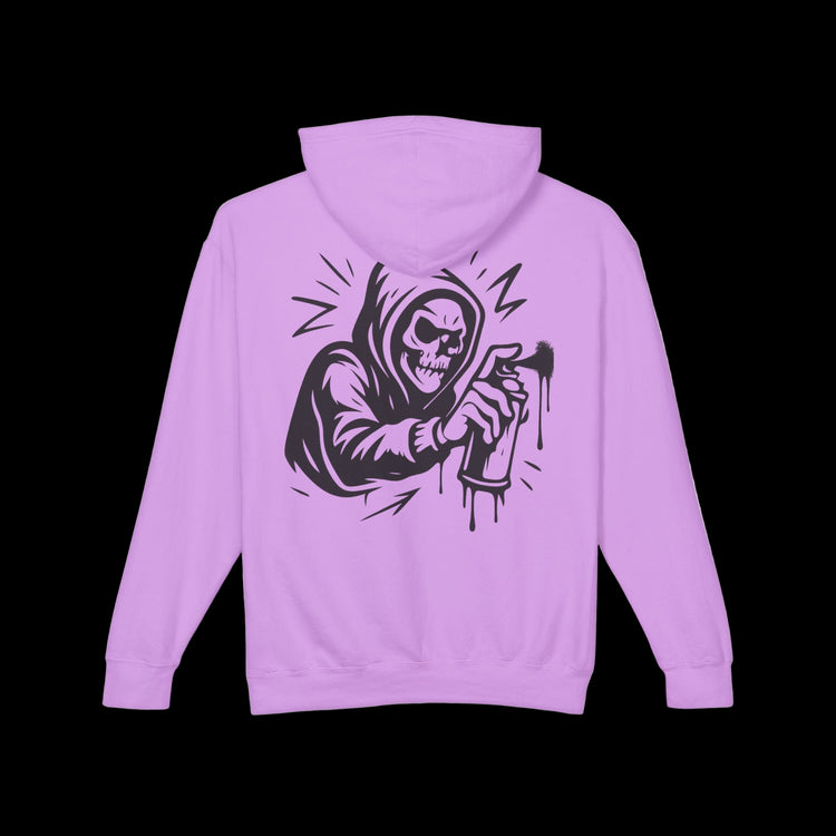 This lightweight sweatshirt wears attitude like a second skin. The "SYSTEM ERROR" block stands out on the front, and on the back, a graffiti grim reaper creates a high-contrast street look, like art in a midnight alley.